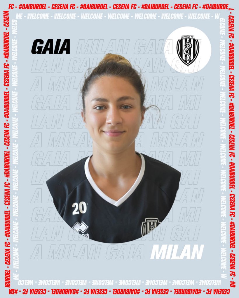 Milan Gaia nata a Monfalcone il 17 Giugno 2002, centrocampista esterna del Cesena FC Femminile. In carriera ha indossato la maglia dell’ unione Monfalcone ( squadra maschile ), ha giocato per 6 anni con il Tavagnacco, anche un esperienza estera nel Birkirkara squadra maltese dove ha vinto campionato coppa maltese e coampionato young.